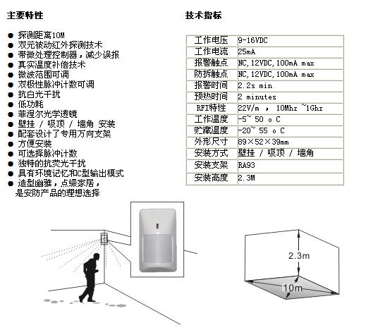 HC-9210PR 探测器是专门设计用于家庭使用的,具有信号扑捉能力强,误报、漏报率低,低功耗和真实温度补偿的特点。产品技术含量高、制作工艺考究、外观造型高雅。