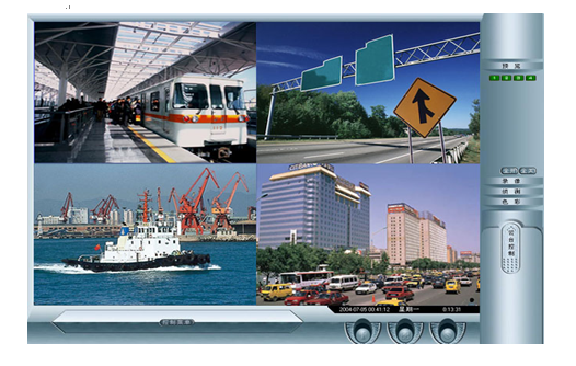 利用17"纯平显示器,显示由监控主机提供的多路图像信号。电脑显示器每个屏幕可以可选多种画面的形式显示,如16画面分割、12画面分割、4画面分割等;选择一路画面时,能对局部画面进行全屏放大,同时可在屏幕上显示通道号及日期时间等。并进行重要场所的画面切换程序。如发现电视屏的某一场所正有事件发生时,可即刻将画面放大至全屏进行细致观察。